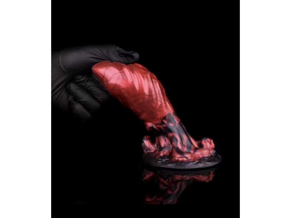 Otevři bránu do temného světa krvavých ghúlů! Crimson Ghoul je unikátní fantasy dildo, které tě ohromí svým šokujícím designem lebky s otevřenými ústy připraveným k zakousnutí do tvých nejtajnějších fantazií. Růžovo-červená mramorovaná textura s tmavě černou základnou vypadá, jako by právě vystoupila z pekelné propasti.