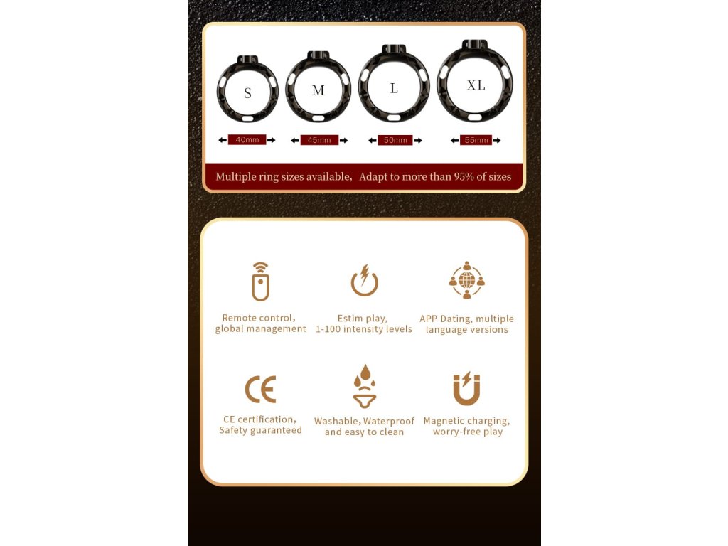 Elektronický pás cudnosti s ovládáním přes mobilní aplikaci posouvá kontrolu a vzrušení na úplně novou úroveň. Nabízí kombinaci moderní technologie, bezpečnosti a smyslné dominance, díky které získáš plnou kontrolu – nebo ji odevzdáš tomu, kdo ji drží ve svých rukou.